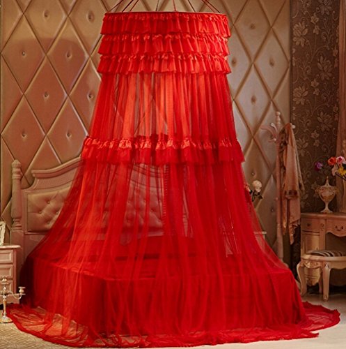 mode : Luxury Palace Princess Triple Lace Triple Hanging Round Dome Wedding Canopy Netting Mosquito Net Romantic Double Bed Valance For Home or Travel Use